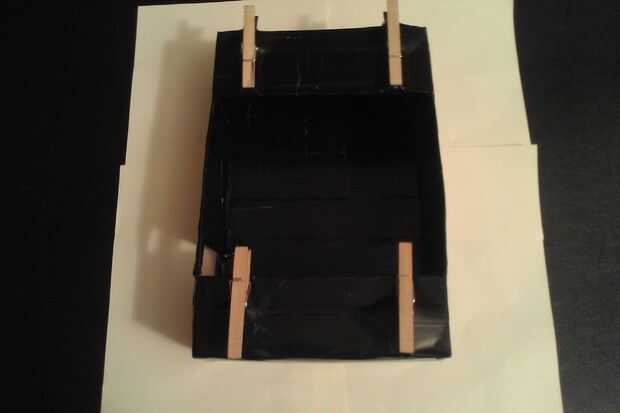 Simplemente cubra todas las partes de la caja de la cinta salvo los extremos del recorte de las pinzas.