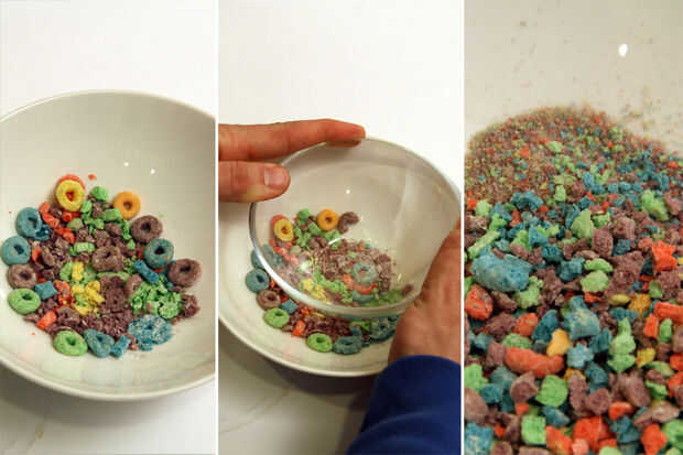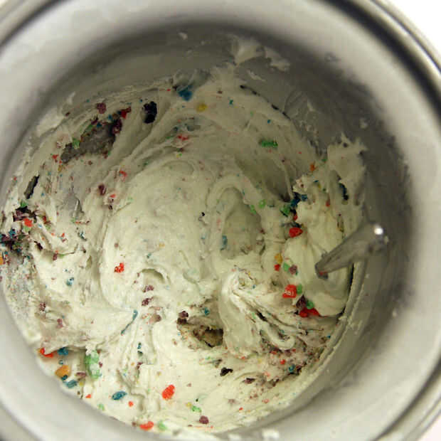 Después de que el helado ha enfriado aplastó más cereal espolvoreado en la parte superior y sirve.