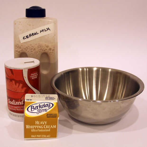 Puede leche de cereal sustituto recto-para arriba en su receta de helado favorito, pero fui por un tipo más simple de helados para poner realmente la leche cereal particular que estaba usando. Límite el azúcar porque la leche de cereales ya es bastante dulce.