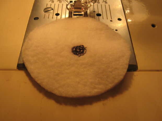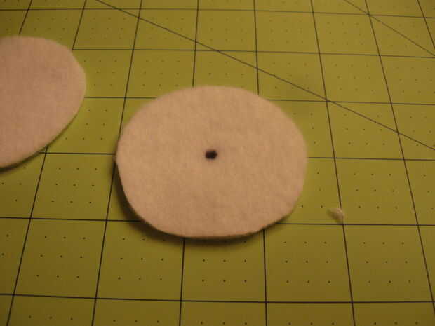 Si tienes un pie de bordado de forma libre llenar en una pequeña área circular un poco más de un cuarto de una pulgada de diámetro en el punto que marcaste. Si hay mostrando aún blanco, color con un marcador de volquete de fieltro negro.