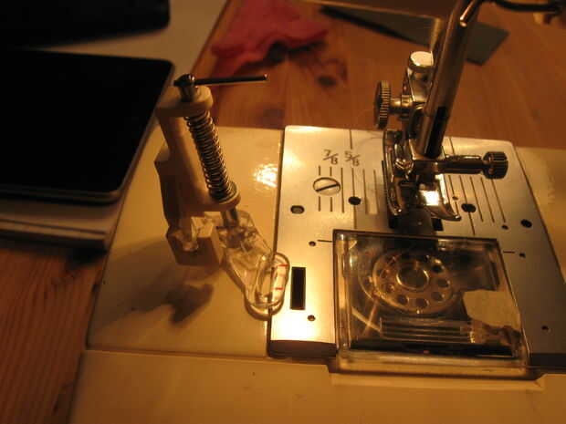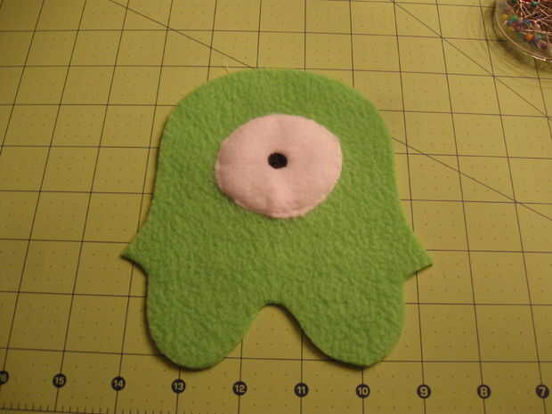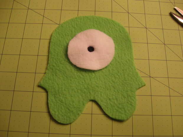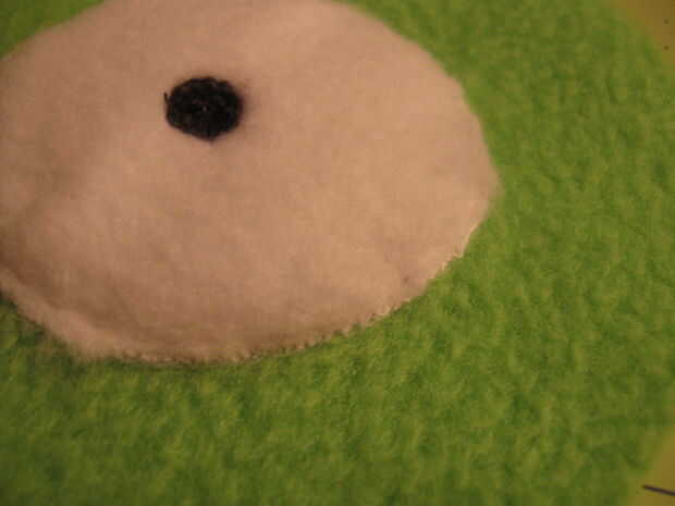 Perno de ojo en el centro de la parte derecha de una pieza de cuerpo verde y luego coser en lugar de conseguir como cerca del borde de los blancos como sea posible.