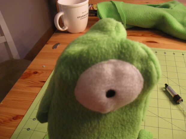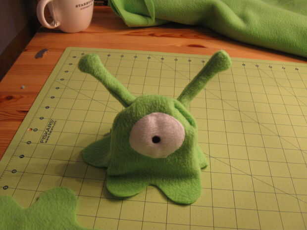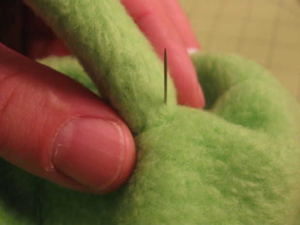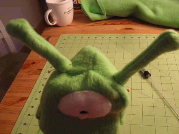 Utilizando una aguja y verde hilo, desde el interior de la babosa y coser las antenas en su lugar utilizando un bucle por todo lo alto. Coser alrededor del borde inferior completo de la antena. Repita para el otro!