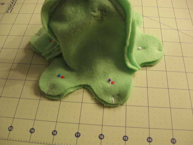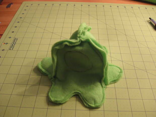 Con ningún imán en su lugar, coloque el vientre contra el cuerpo, alinear los tentáculos con encarando los derechos. Prender juntos entonces. para ello todo el camino alrededor del cuerpo dejando el espacio entre dos tentáculos adyacentes en un pedazo de cuerpo trasero abierto. He marcado esto con pernos de doble para que yo no coser allí.