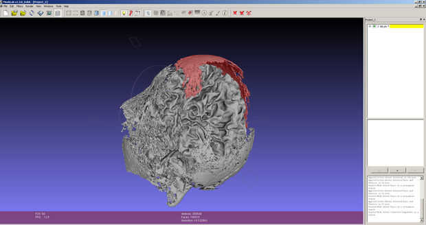 MeshLab usted podrá ver y navegar por su 3D modelo así como de seleccionar y eliminar datos no deseados. Usar las herramientas de dos selección y las opciones de selección en el menú de filtro para hacer esto.