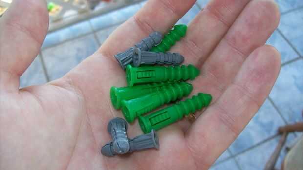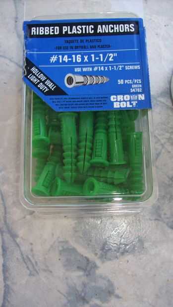 Pensé que los anclajes de pared utilizados para objetos pesados en paredes de yeso de la mano tenían potencial allí. Tengo dos tamaños - verde y gris - y decidió sería suplente les de interés visual.