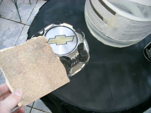 En primer lugar, resulta que la gente de Chevy uso un plástico de muy alta calidad o resina para cubrir su logotipo. Es claro, duro y muy difícil de rayar. Tenía a utilizar papel de lija gruesa para iniciar, usando solamente gradualmente más fino y una multa de hojas. Tomó WAAYYY más tiempo y esfuerzo que la jarra de pretzel.