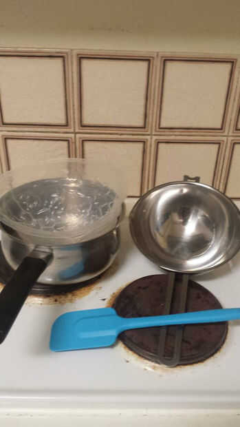 • Un inserto de doble caldera. (Si usted no tiene uno, usted puede conseguir mediante el uso de un molde de acero inoxidable con un borde más grande que la sartén)