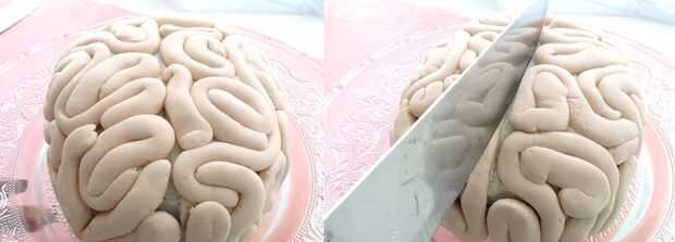 bolas de pastel ordinario transforma en cerebros sangrientos para Halloween creando una cáscara de caramelo usando un molde de cerebro de silicona, relleno con rojo color mermelada y una bola de pastel.Paso 1: ingredientes1 bizcocho de chocolate al h