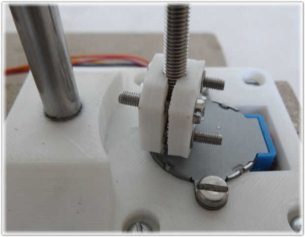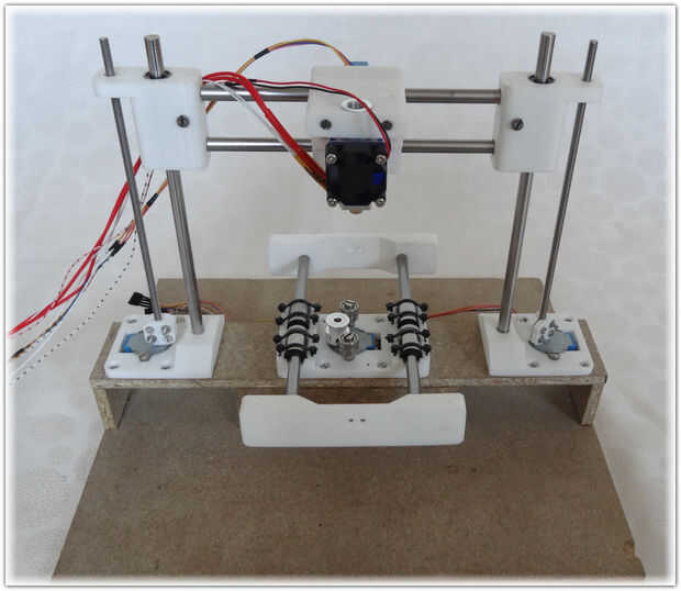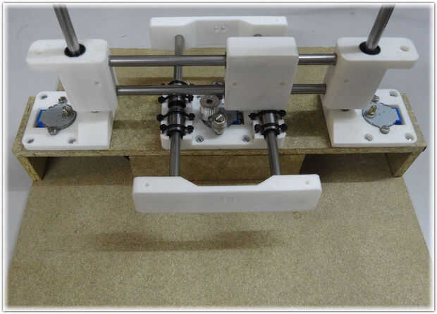 Luego poner los "extremos de X" + "X-carro" con las varillas lisas de 17,5 cm (eje x) y 21cm liso barras (eje z) juntos