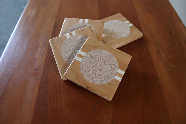posavasos de repuesto suelo laminadoPaso 1: corte y fresado Desafortunadamente solamente cuenta que iba a hacer un instructable después de terminar este proyecto.Corto 5 pedazos de suelo laminado en cuadrados de 10cm.Luego usé un router con un poco r