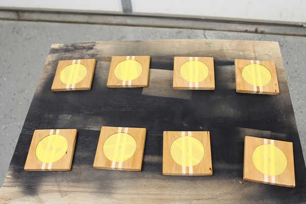 Antes de añadir los prácticos de costa a la parte superior, corte alguna cinta de pintor y tapar los agujeros para permitir que la termine el posavasos sin conseguir terminar en el área de la cola.