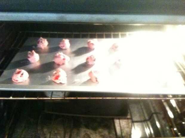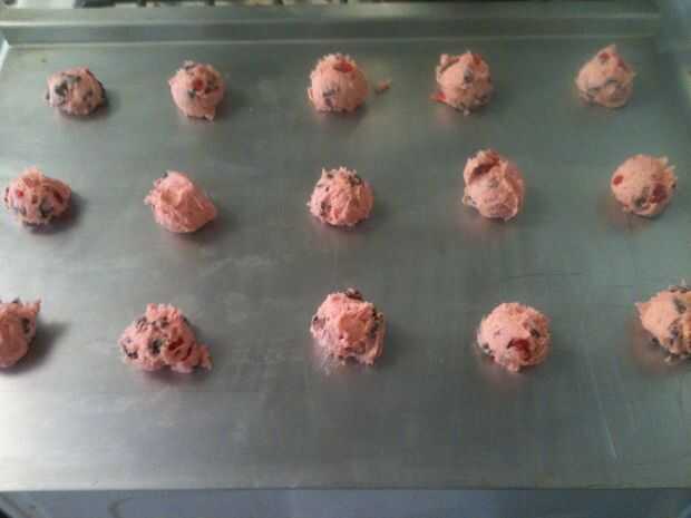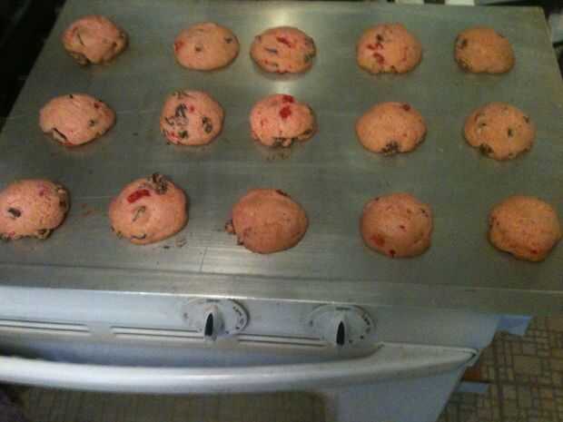 Lugar en cucharaditas (cuchara pequeña) a hornear aproximadamente 2 pulgadas de distanciadas.  Cueza al horno en 370o bordes son ligeramente dorada 10 a 12 min.  Hace unos 3 doz. cookies.