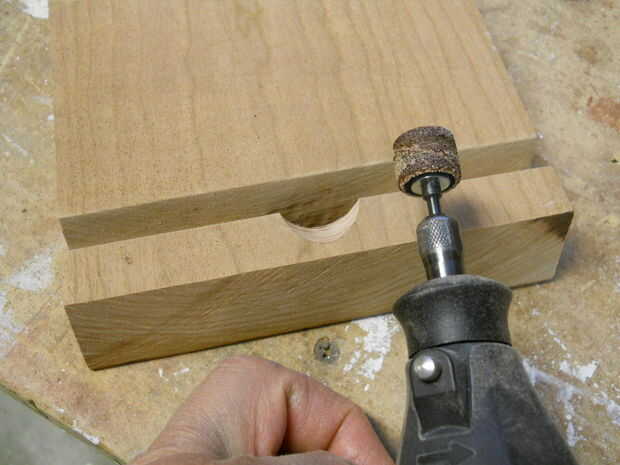 Usar el más grande (1/2" de diámetro) lijadora tambor (en la herramienta rotatoria) para sacar material para el botón home del iPad.