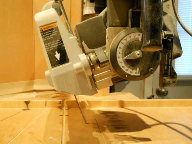 Para configurar mi brazo radial sierra a 20 grados para cortar la ranura. El ángulo de la hoja se ajusta fácilmente en frente.