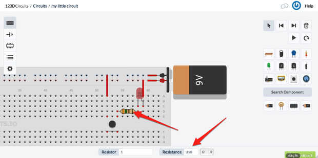 Haga clic en el resistor y establezca su valor en el inspector que se puede ver en la parte inferior de la pantalla.