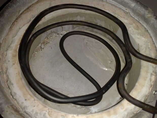 3. Asegúrese de que las bobinas individuales no toquen entre sí o la olla para el caso, entonces lo coloca en el anillo de hormigón que acaba de hacer.