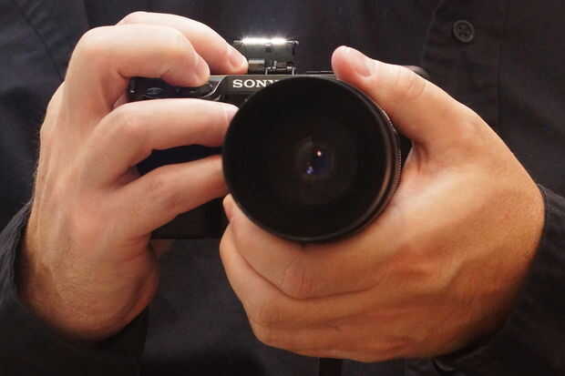La principal complicación es que, como se puede ver en la foto, esto probablemente requerirá cambiar el grip de la cámara un poco para que se utiliza el dedo índice para empujar el flash en lugar de presionar el botón del obturador. Además, probablemente querrá pensar dos veces antes de usar el EVF (visor electrónico) al desplazar el flash. Si se sostiene la cámara a la cara, usted va a utilizar su frente como el reflector principal, que es aceptable, pero le dará un poco de un tinte de color cálido. Techos de colores también pueden imponer tintes (fácilmente corregible).