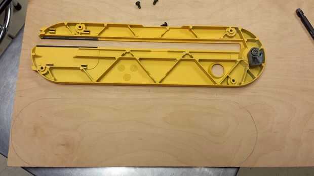 Sierra de mesa cero tolerancia cuchillaComo parte de mi nivel de entrada vio mejoras que necesitaba para hacer una hoja de la tolerancia cero insertar porque era peligroso el inserto plástico que viene con la sierra, el espacio alrededor de la hoja f