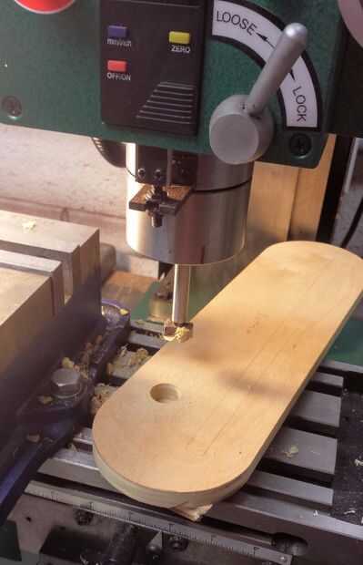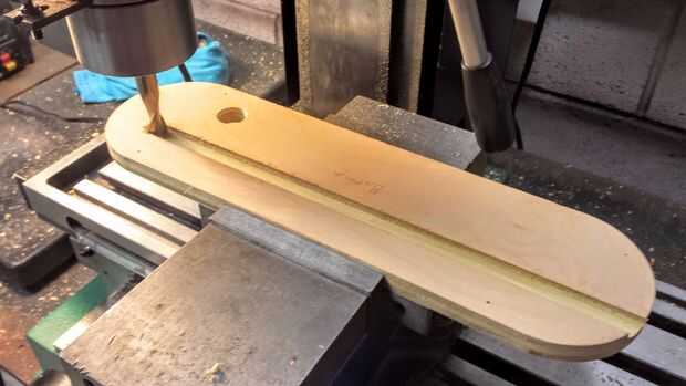 Utilizar un 3/4" forstner broca para taladrar el agujero del dedo. Esto es opcional, pero lo más fácil quitar el relleno. Entonces molino 1/2" redonda ranura poco más de medio camino a través de la madera donde el disco va a ir. Esto reduce la cantidad de madera causando fricción y calor en la hoja. También hace más fácil encajar el inserto en pasos posteriores. Si no puede moler la ranura, use su sierra de mesa o router para cortar un surco de 90 grados en lugar de otro.