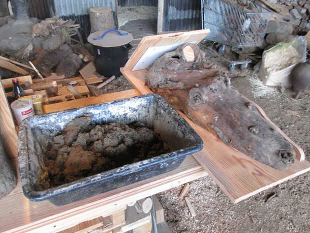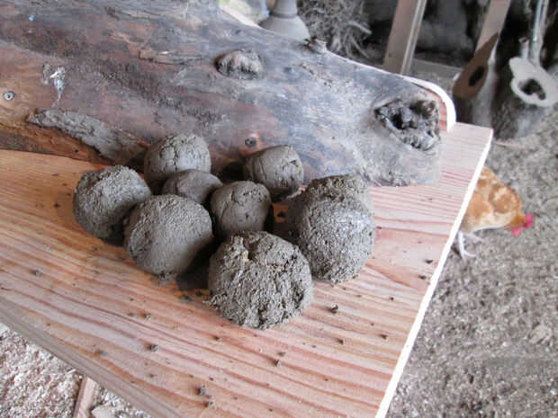 Hacer bolas de barro y apretarlas donde sea necesario.