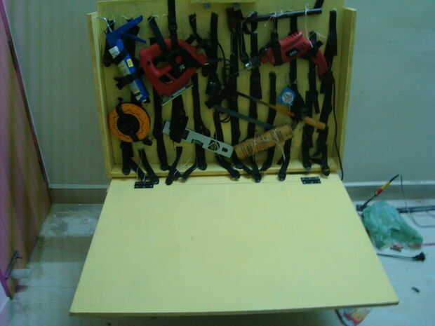Quitando algunas piezas (las piezas de montaje de pared) también puede hacerse una maleta portátil, para guardar, como estaciones de trabajo y tablero de dibujo. La característica más importante para cualquier estación de trabajo portátil es que las herramientas deben ser firmemente.