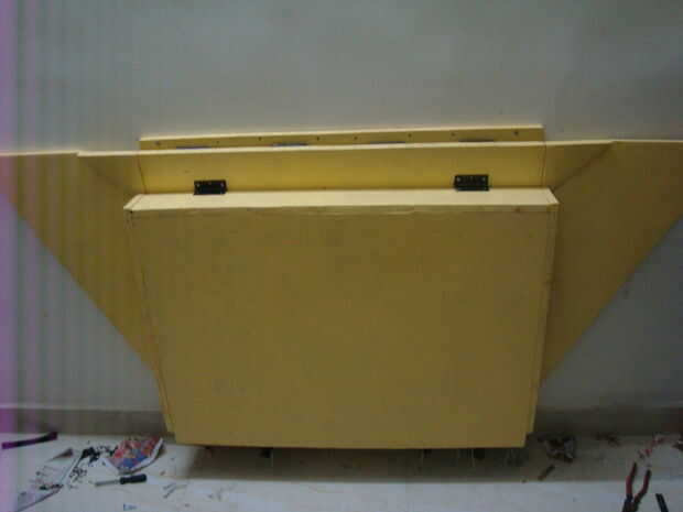 La bisagra de la placa de estación de trabajo debe estar en la mitad inferior de la tira. Asegúrese de que el triángulo doble cómodamente (hice ese error que jodido un poco más alto y no doblan los triángulos debajo).