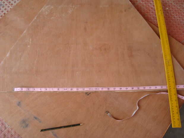 Por ahora 1 tablero habría sido consumido para la franja de 6 pulgadas y la mesa de trabajo. La 2 º Junta habrían sido utilizada para los triángulos.