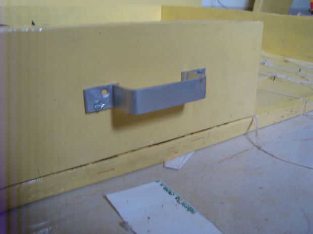 Vertical (en forma de L) sujetadores y atorníllelos en su lugar para la parte delantera del gabinete desde que fije la empuñadura a él y toda la carga se pone en cuando levante.