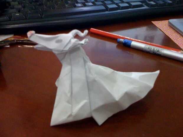 Bueno, casi hemos terminado! Lo último que tienes que hacer es curl el cuerpo, por lo que parece un pañuelo real fantasmal cuerpo. Usted puede agregar algunos colorantes para hacer más real. Gracias por ver! Espero que todo el mundo puede hacer esto. Causa todos se quejan de mi origami anterior porque estaban demasiados!
