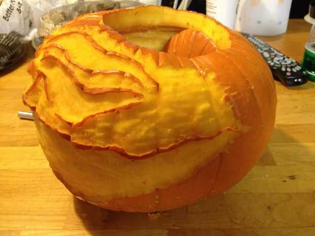 Si usted descubre que su cero parece un poco demasiado débil a pesar de que tiene luces brillantes dentro de la calabaza que le recomiendo que use una cuchara grande y raspa el interior para hacer el chicharrón "más fino" por lo que la luz pasa a través de más fácil.
