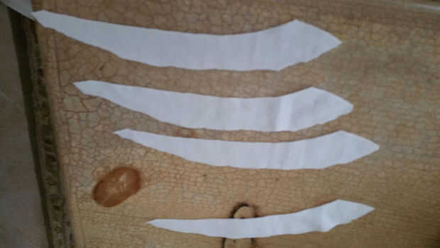 2) dependiendo de lo grande de una lujosa desea crear, cortar dos piezas de tela blanca en forma de foto lateral de un perro con unas tijeras. (Nota: no olvide cortar una cabeza y para hacer una forma de una boca, usted puede hacer su boca abierta o cerrada. Cierre requerirá una línea adicional de tela negra para delinear la boca más tarde).