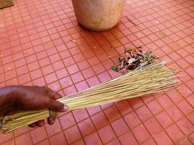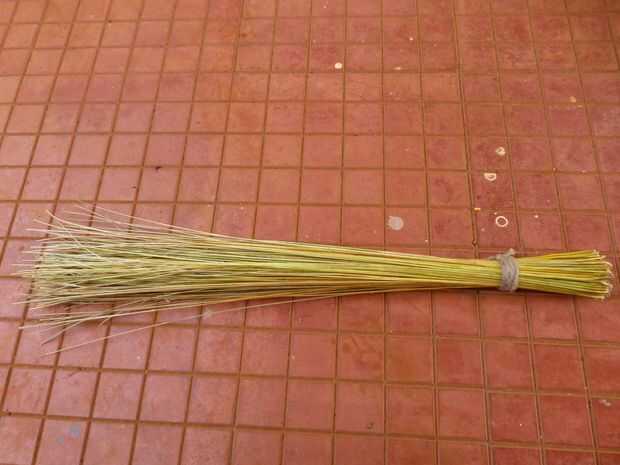 Una escoba hecha de árbol de coco hojas con un presupuesto de cero...