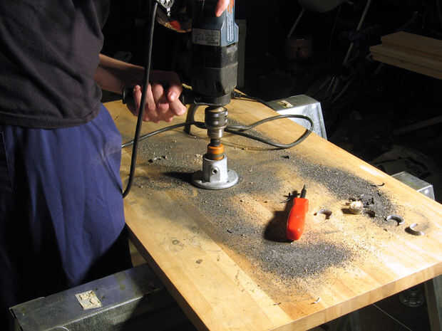 Las bridas fueron atornilladas a la mesa para mantenerlos seguro durante la perforación