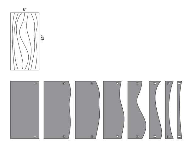 Para crear la geometría de corte básica, puede dibujar una serie de líneas de perfil en una elevación del bloque. En este ejemplo, estoy rebanando un 3 "x 6" x 12 "bloque de la espuma XPS en una serie de 3"x 12"rebanadas. Esto significa que mis líneas de perfil (definidos por los dos extremos del alambre caliente) se dibujarán en un 6" 12" rectángulo. Usted puede dibujar estas líneas de perfil software de dibujo como AutoCAD o Adobe Illustrator, o podría dibujarlos a mano. Líneas de perfil pueden ser curvilínea, recta, zigzagueante, etc.. Tenga en cuenta que las líneas más dibuja, las rebanadas más harás, y el diluyente será--si deja 1/2" entre dos líneas, será la superficie en rodajas 1/2" de grosor.