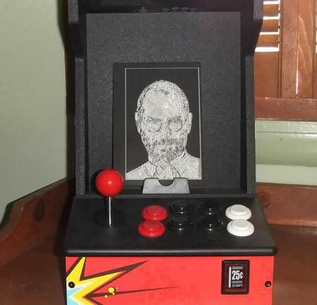 (Esta grabado de Steve Jobs, derivado de la foto de la portada de su biografía por Walter Issacson, es mi primer éxito; Espero que la calidad de la prestación para mejorar como que perfeccionar el software. El ICade en la foto no tiene nada que ver con el Instructable, era a lo único que tenía práctica que podría utilizar como soporte de la que tenía un fondo negro :-))
