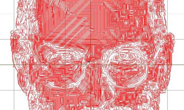 Ejecutar autotrace en la imagen disminuida y ahora tienes un conjunto de vectores que pueden rayar el dibujo un pixel del contorno. Mantenga repitiendo este paso hasta que la imagen se ha reducido a nada, y usted encontrará que ha arañado a todo el interior de área de todas las partes blancas del dibujo de mapa de bits original. La imagen de arriba muestra los trazados vectoriales de una parte de la imagen - zoom en un lote para que puedas ver cada línea.