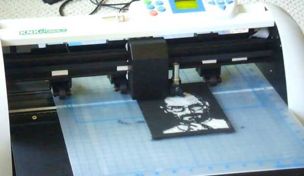 Debe ser capaz de hacer arte de scratchboard con una máquina CNC y una herramienta de grabado si tienes uno. Me compré un cortador de vinilo usado específicamente para este proyecto. No todos los cortadores de vinilo funcionará por cierto, algunos de ellos no tienen suficiente espacio para encajar el scratchboard debajo de los rodillos de sujetador.