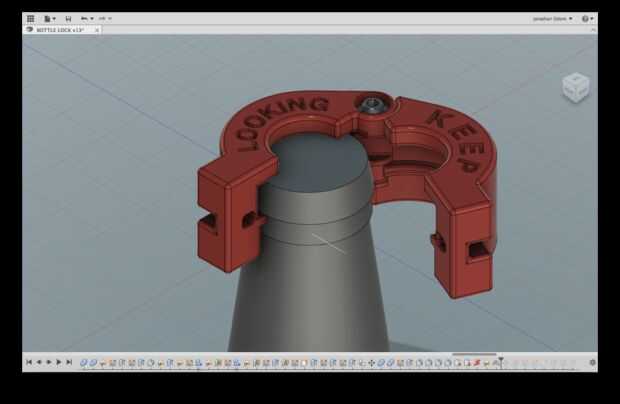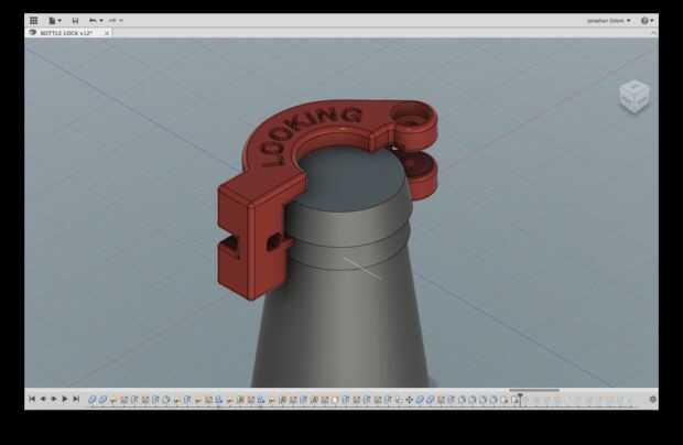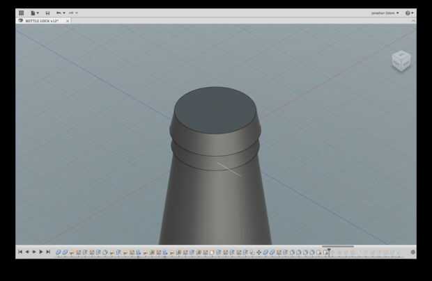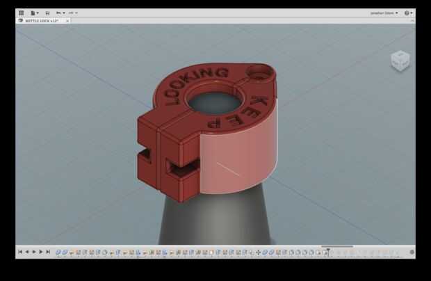 El primer paso en el diseño es a medida de la botella. Las formas de las botellas varían bastante, pero las tapas parecen ser totalmente estándar. Por eso decidió hacer el bloqueo de la abrazadera en la tapa de la botella y deja cierto margen de maniobra para el tamaño del cuello.