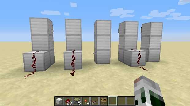 Ahora ve detrás de sus pilares y coloque un bloque entonces redstone cable como se muestra. (las que tienen estos bloques son los que se abrirán la puerta cuando todos se tiran).