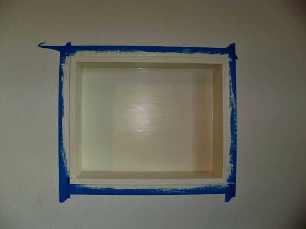 Enmascare la pared alrededor de su caja fuerte. Usando su color favorito, pintar el interior de su caja fuerte con el piso falso sólo parcialmente insertada. Que no desea que se pegue a la base. Hice dos manos de pintura. Antes de que la pintura se seca con cuidado retire la cinta adhesiva. Si espera hasta después de que se seque, necesitará utilizar un cuchillo del exacto o navaja para marcar a lo largo de los bordes así que pintura no se detuvo. No me molesté de pintura el compartimiento secreto