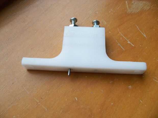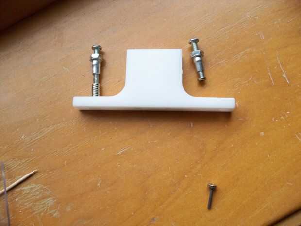 Se hacen dos montajes de tornillo de ajuste que le permitirá afinar la fuerza de atracción/repulsión magnética para los pasadores de seguridad. Los tornillos de ajuste son dos 1.25" zinc acero pan máquina pernos roscados en una tuerca de remache 8-32 que comprimido solo lo suficiente para ser un ajuste apretado en los agujeros previstos en la parte superior de la Asamblea, sin dejar de ser desmontable. El 8-32 tuerca en el perno de la máquina es bloquear los tornillos de ajuste en su posición una vez que se hacen los ajustes deseados.