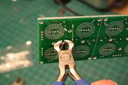 El nuevo PCB menor sólo necesita algunas piezas: los LEDs RGB y algunos diodos 1N4148. La serigrafía en el tablero indica la dirección y la posición de los diodos y LEDs.