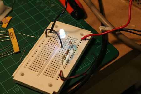 Cada LED RGB tiene tres LEDs dentro del paquete. Comparten un terminal común y tienen un solo plomo separado que sale. Porque tienen características diferentes – es brillo, actual y requerimientos de voltaje, pasamos algún tiempo probando varias combinaciones. Incluso nosotros asesinamos un par de LEDs $2 inocente sólo para ti. Bueno, los otros dos colores son todavía utilizables...