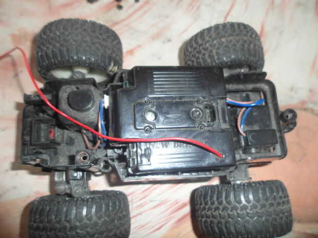 Toma tu destornillador y quitar cada tornillo que se puede ver. Quite cada cosa hasta tu abajo sólo la batería, el circuito y los dos motores. Quité uno de los motores porque era fácilmente desmontable pero no es necesario. Cuando listo con este paso debe ver algo como fotos tres por ocho (se verá diferente dependiendo de qué tipo de coche del RC utilizas).