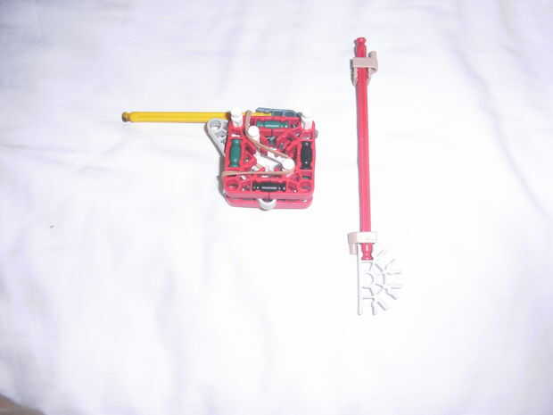 con este práctico dispositivo puede alcanzar cosas que están fuera de alcance. Esto es lo que necesita:barras: 4 verde, blanco 20, 4 azules, 4 amarillo, 1 grisConectors:1 marrón, gris 10, naranja 16, 8 rojo, 2 blancootros: 10 espaciadores grisPaso 1: