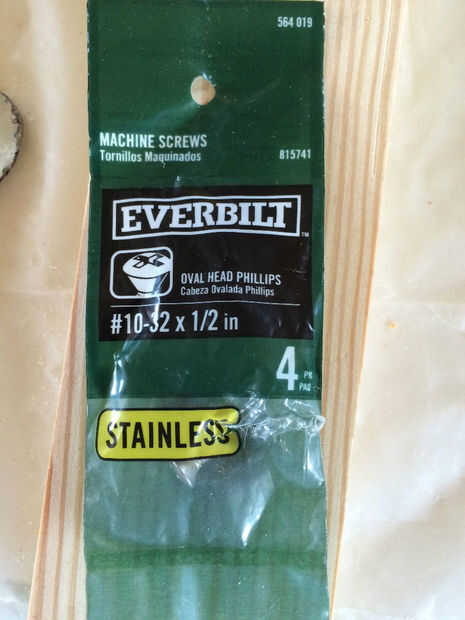 1 - paquete de tornillos de #10-32 x 1/2"(probablemente debería haber recibido 3/8")