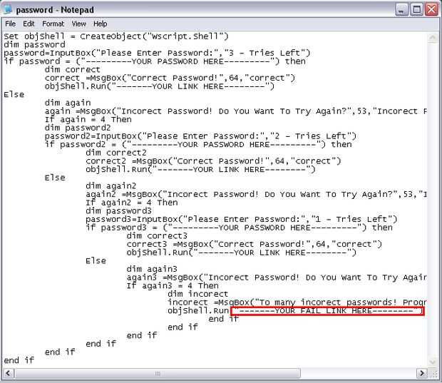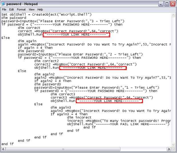 ok deja comienzo con the'correct enlaces... hay 3 de ellos deberías cange para por ejemplo 'correct.bat' o exe... cuando llegue la contraseña correcta se ejecutar 'watever.bat o exe'... y en eso escritura de las secuencias de comandos para abrir la carpeta...