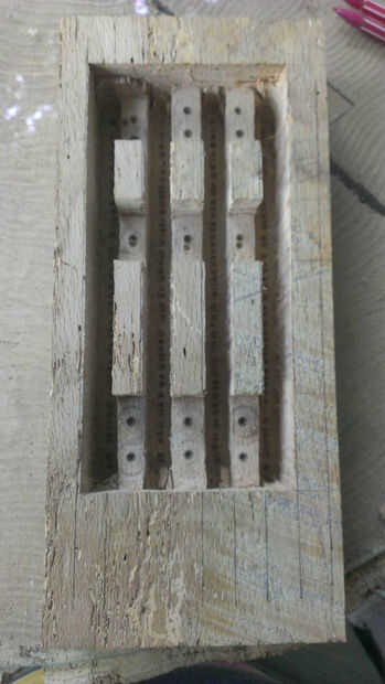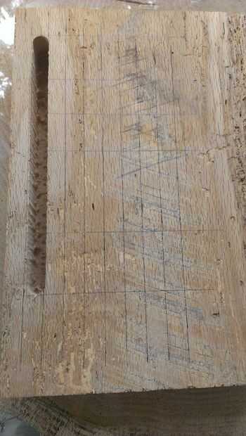 Las ranuras rectangulares que se cortan en los lados cortos. Estos deben coincidir con los canales del tornillo y llave