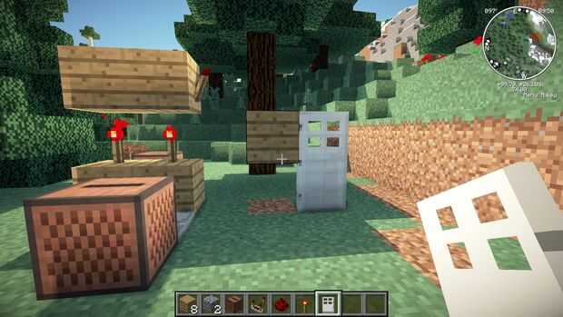 Por último, lugar su plancha de la puerta siguiente del bloque, pero asegúrese de que no es entre la antorcha de redstone y el bloque. Se mete la señal.