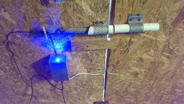 sólo utilicé algunos pvc un tubo metálico y algunos chatarra todo alineado y conectado el motor servo utiliza un cuadro de proyecto $5 barato de radioshack que tenía colocación redonda que lo acoja todo.